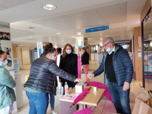 L’opération “parapluies roses”à l’intention du personnel dans le Hall Sud du CH d’Angoulême vient de se finaliser par la vente solidaire d’une centaine de tous les parapluies roses suspendus à l’hôpital au profit de la lutte contre le cancer du sein.