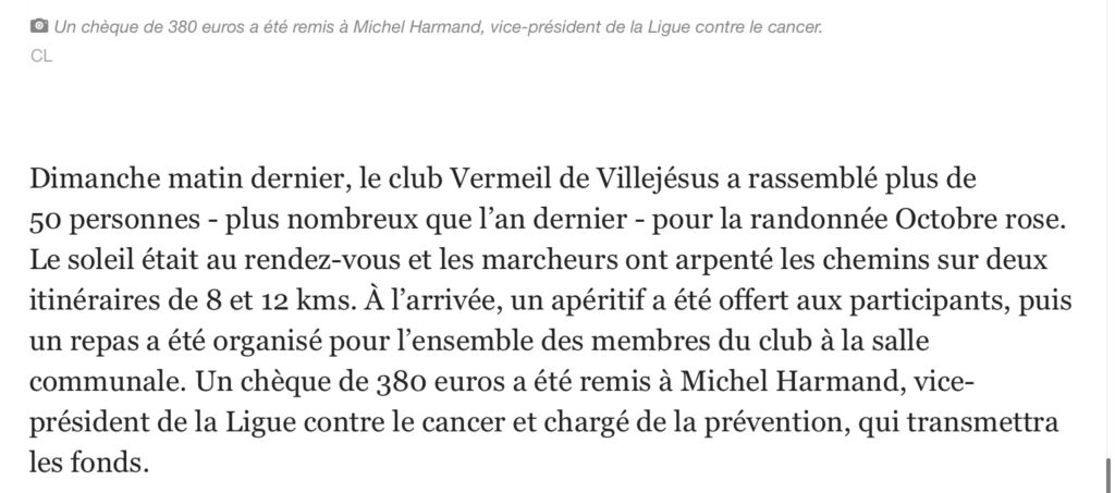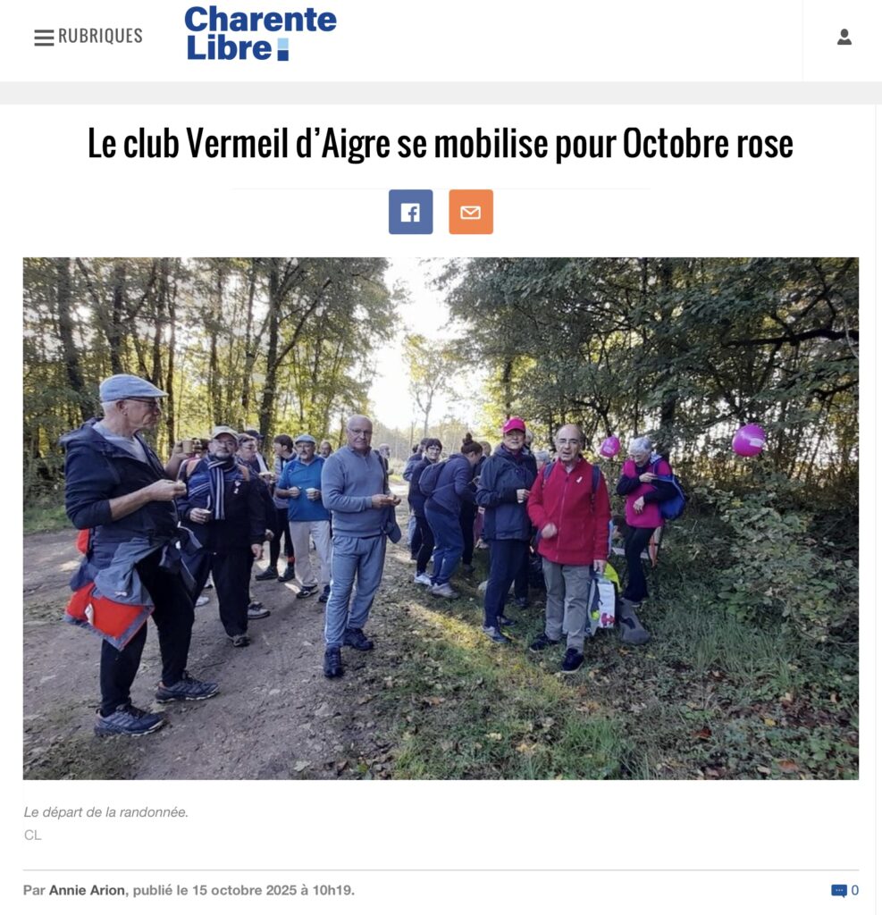 AIGRE le club Vermeil mobilisé pour Octobre Rose