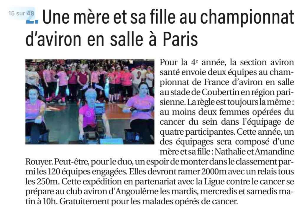 Angoulême : une mère et sa fille au championnat d’aviron en salle à Paris par cd16 · 31 janvier 2026Vendredi 30 janvier 2025