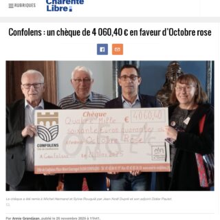 Un mois de solidarité et de générosité au profit de la prévention et de la lutte contre le cancer Angoulême, novembre 2025 – Le Comité Charente de la Ligue contre...