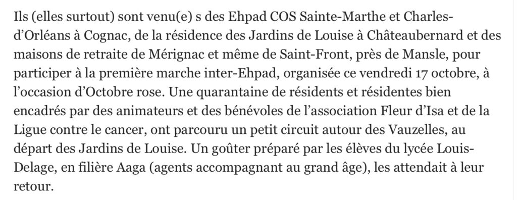 CHATEAUBERNARD : les EPHAD ont marché contre le cancer du sein !