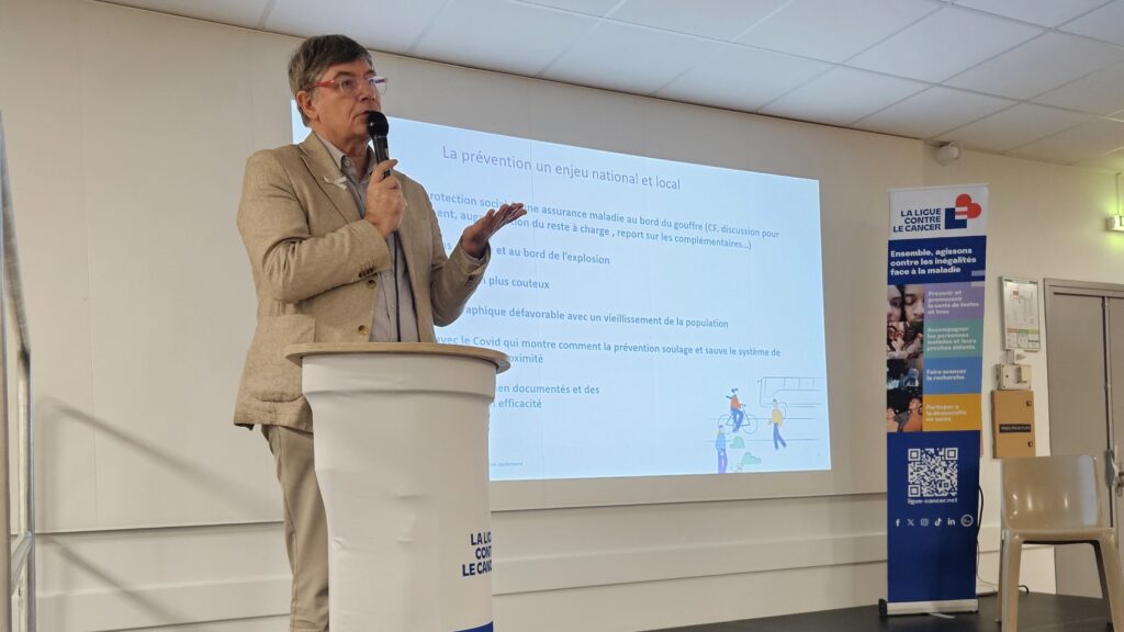 Le Dr Emmanuel Ricard, Directeur de la prévention de la Ligue Nationale contre le cancer, a exposé les enjeux de la santé et l’importance de la prévention, il a souligné l’importance pour les municipalités de s’engager dans le programme « Ma Ville se Ligue ».