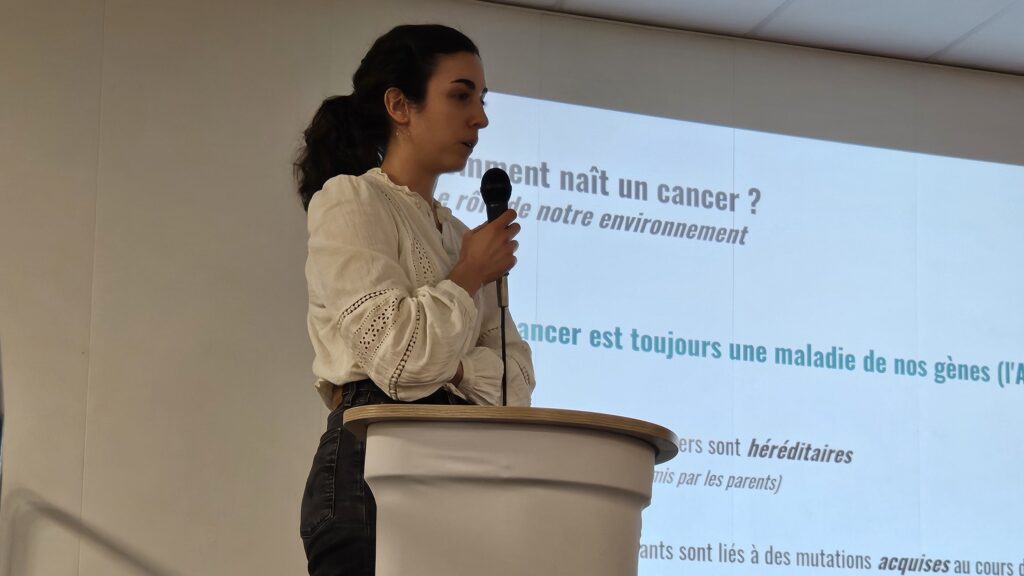 Puis, le Dr Lucile Duval, oncologue médicale au centre clinical de Soyaux, a expliqué les mécanismes de survenue d’un cancer et l’incidence de notre environnement qu’il soit « choisi » ou subi. Elle a mis en évidence les comportements à risques sur lesquels nous pouvons agir : tabac, alcool, alimentation, etc.