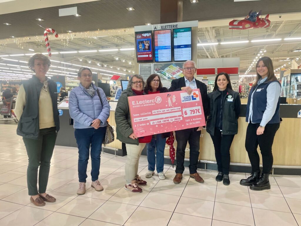 AngoulĂȘme, novembre 2025 â Le ComitĂ© Charente de la Ligue contre le cancer tient Ă exprimer sa profonde gratitude envers la Direction et le Personnel dâE.Leclerc Rivieres-La Rochefoucauld , de lâensemble des clients, partenaires et bĂ©nĂ©voles qui se sont mobilisĂ©s durant tout le mois dâoctobre. GrĂące Ă cette formidable chaĂźne de solidaritĂ©, 7 592,50 ⏠ont Ă©tĂ© collectĂ©s pour soutenir nos actions locales de prĂ©vention et dâaccompagnement des malades. đȘâš