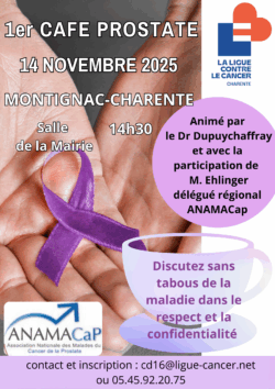 14 novembre - 14 h 30 min /17 h 00 min CAFE PROSTATE à MONTIGNAC Montignac, salle de la mairie 25 Av. de la Boixe, La Boixe