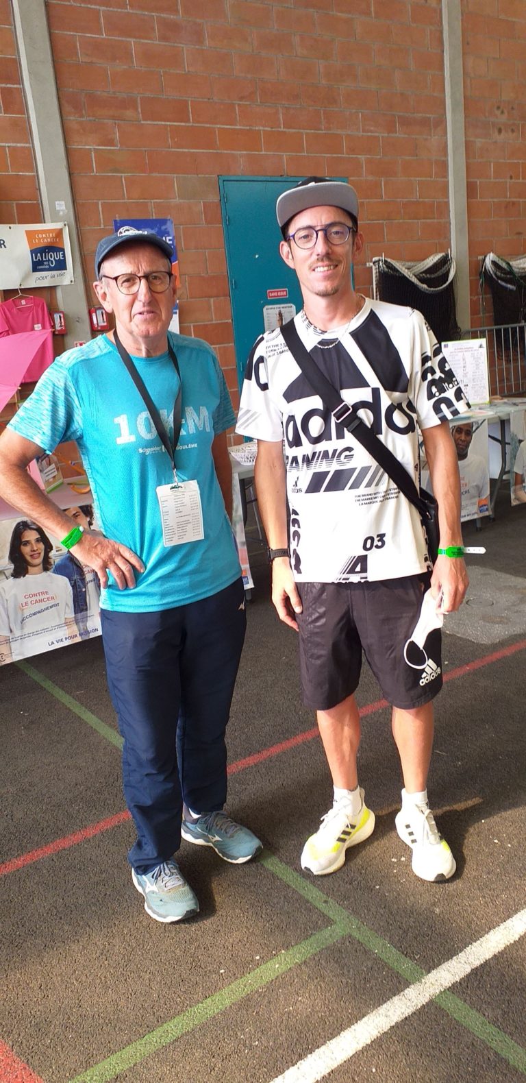 Sur notre photo devant notre stand en septembre 2021, Christian Rapion et Yohann Kowal, champion d’Europe de 3000 steeple…