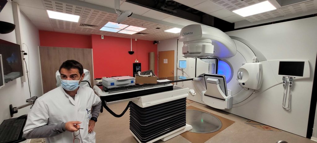 Cédric REVELEN, directeur opérationnel du CERAC (CEntre de Radiothérapie Angoulême Charente), devant le 3e accélérateur de particules installé en janvier 2022 au CH d’Angoulême.