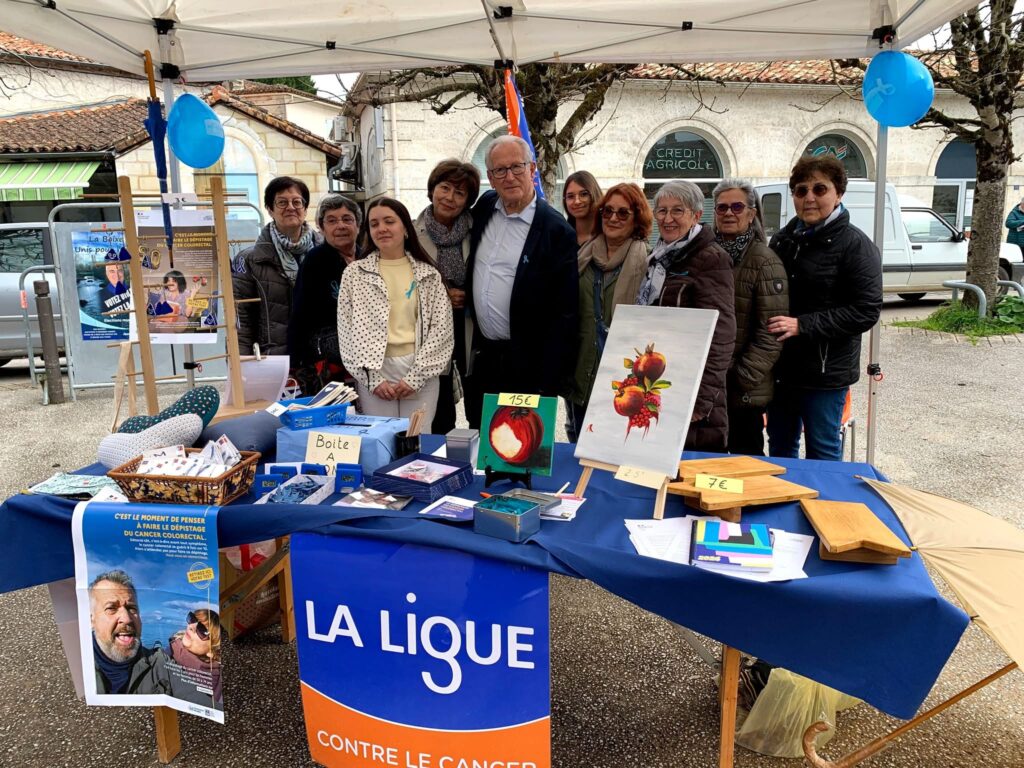 Dans le cadre de Mars Bleu, mois national de sensibilisation au dépistage du cancer colorectal, la Ligue contre le cancer était présente ce samedi matin au marché de Montignac pour une opération d’information et de prévention particulièrement appréciée du public.