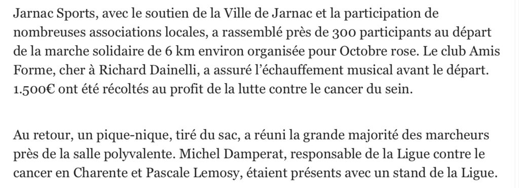 Octobre Rose à JARNAC