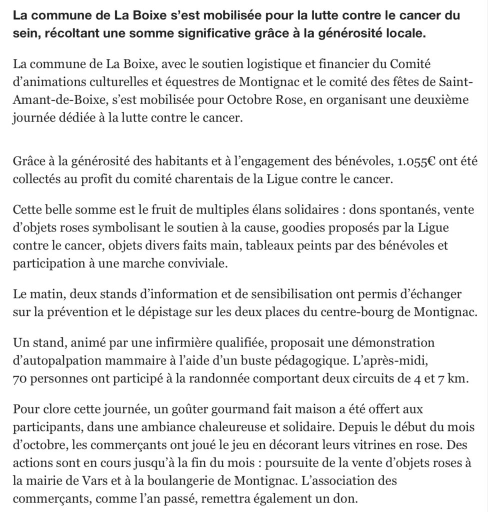 Octobre Rose au Gond-Pontouvre le 16 octobre !