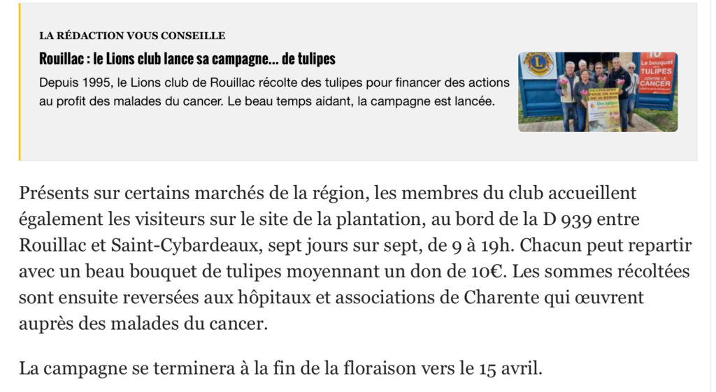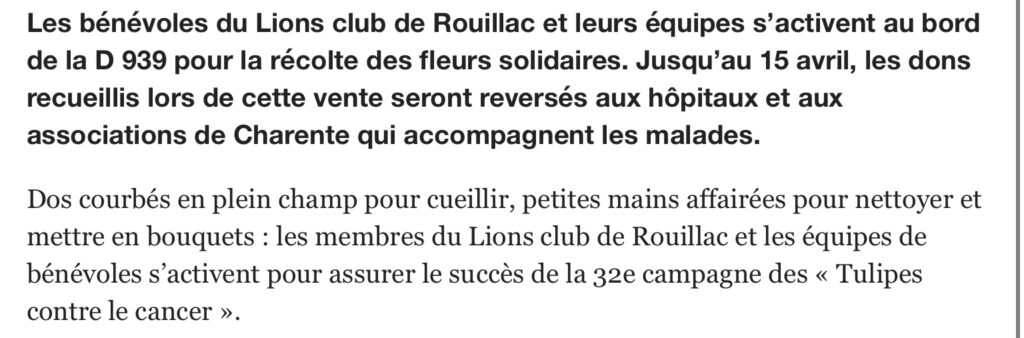 Aux Amis et Amies des « Tulipes contre le Cancer »