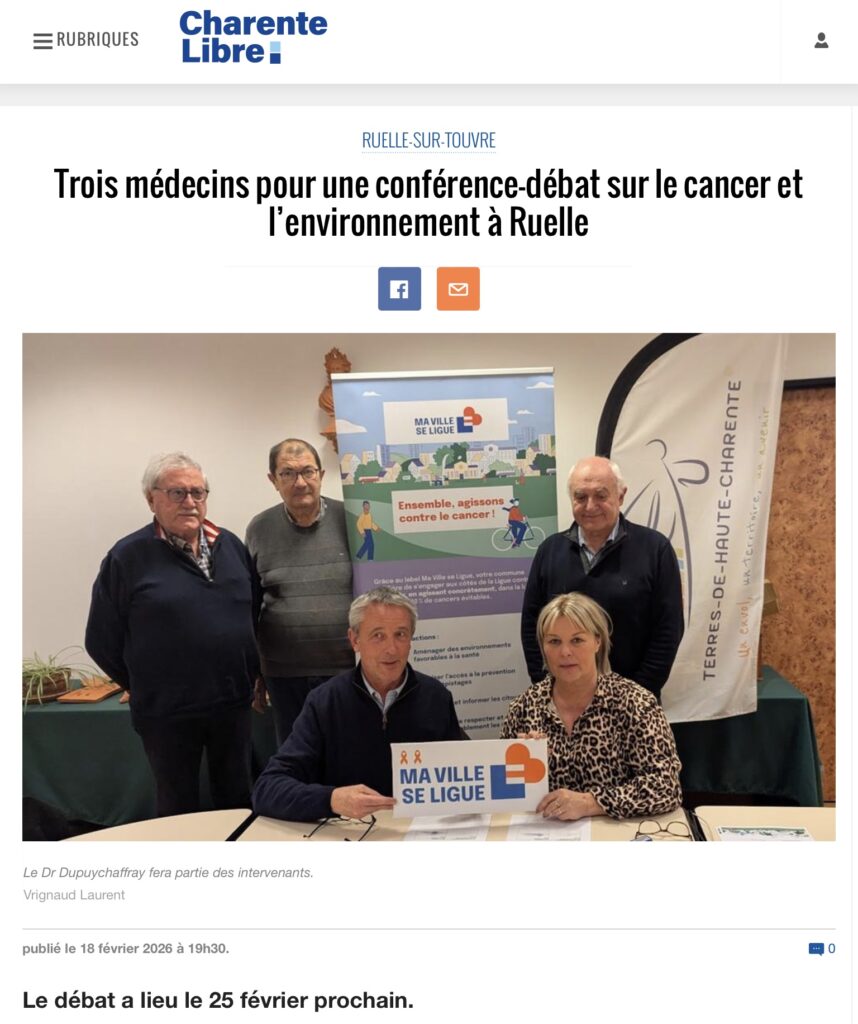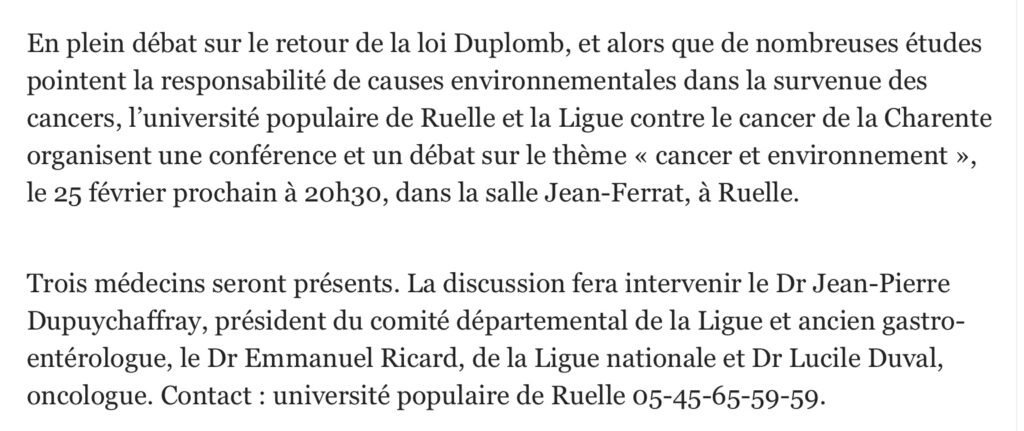 Ruelle-sur-Touvre, conférence-débat : « Cancer et environnement »