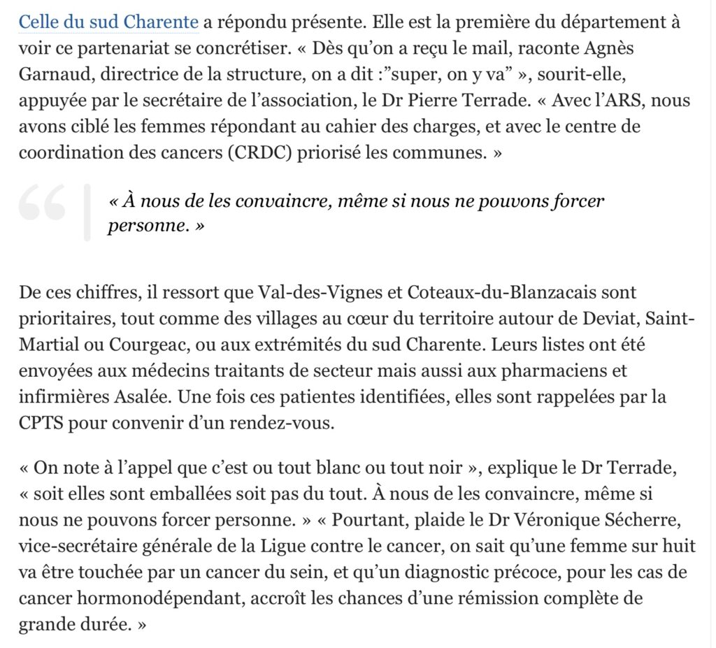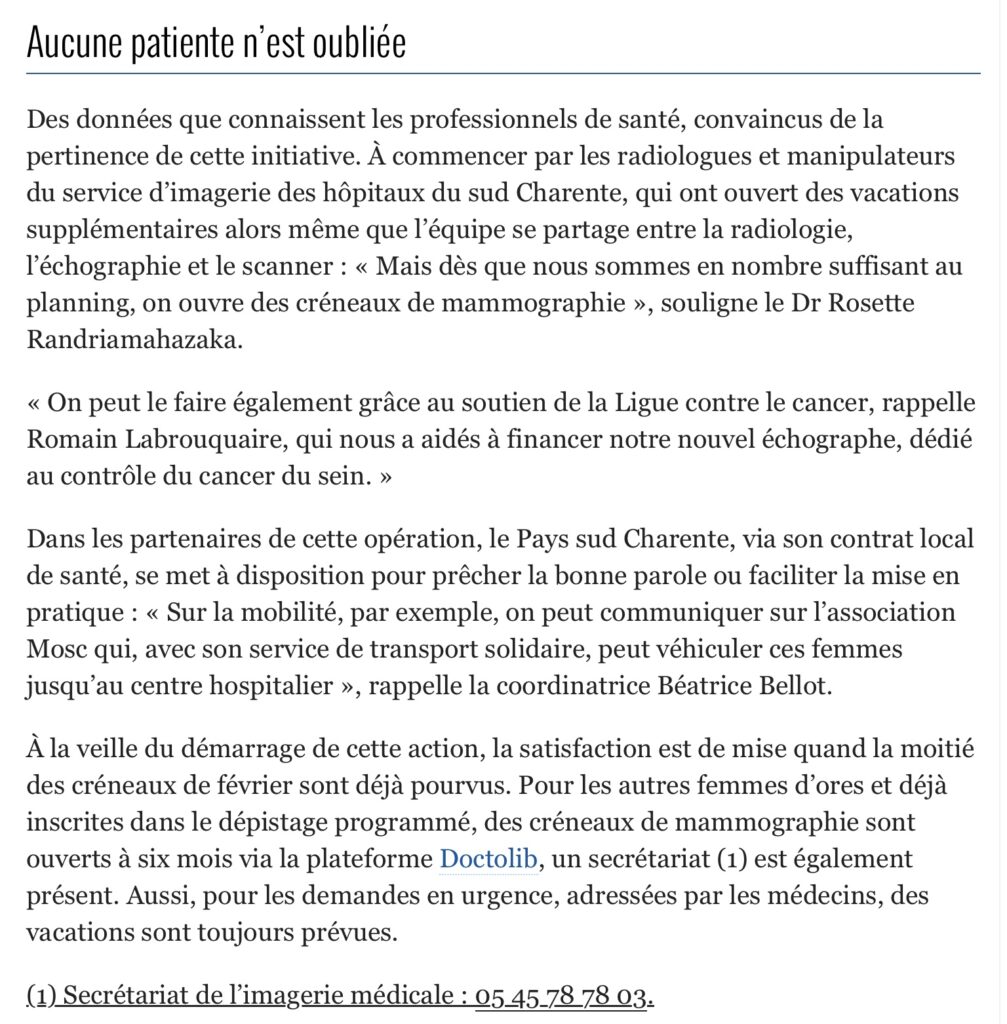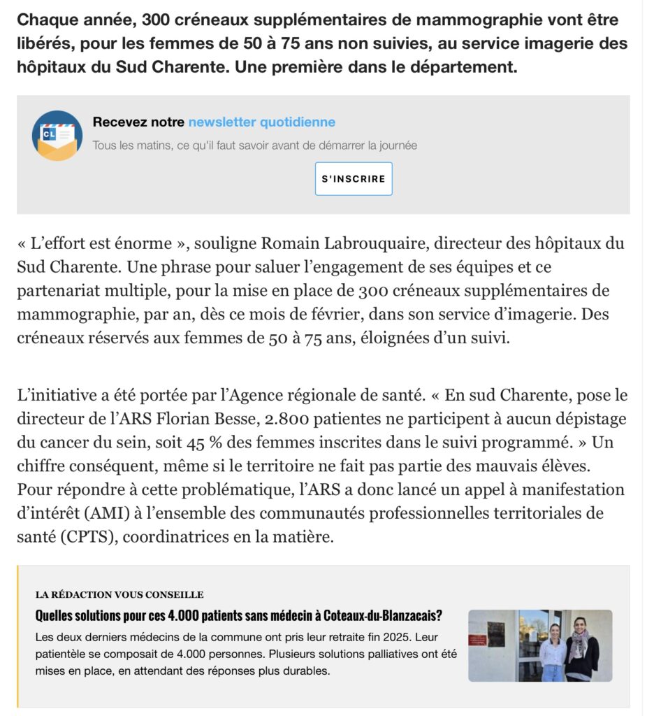 Sud-Charente, des mammographie pour les femmes non suivies pour le cancer…