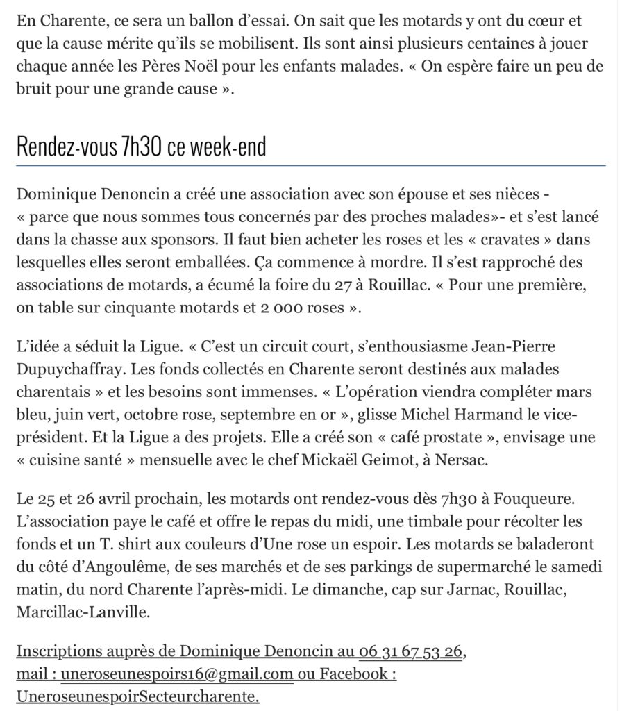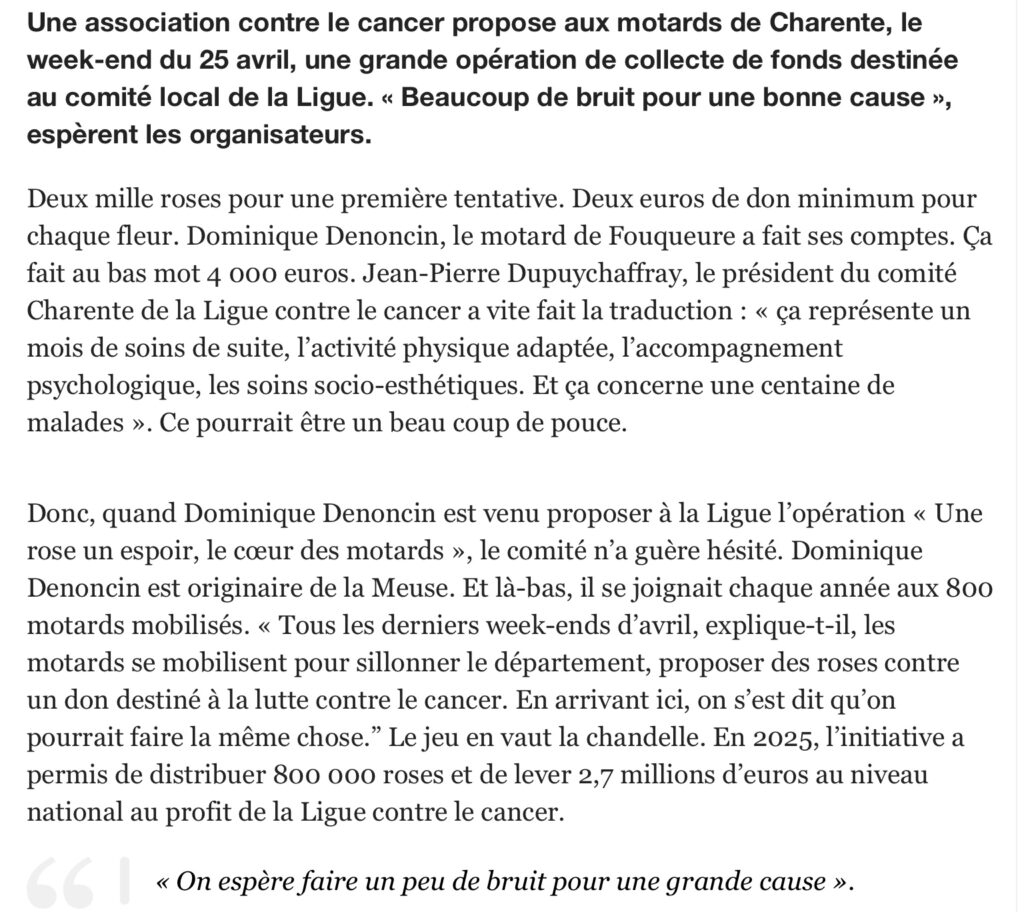 « Une Rose un Espoir » : généreux motards !